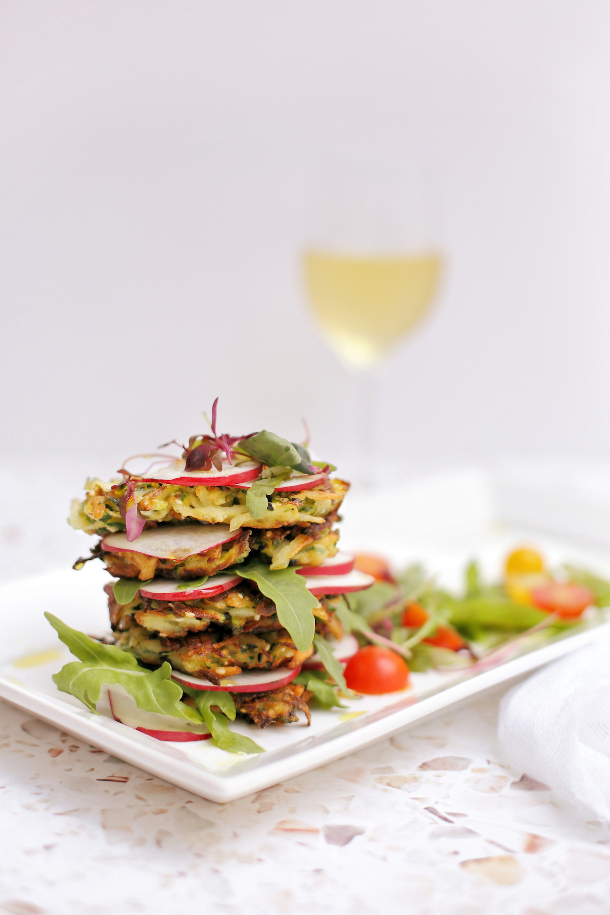 The dish is vegetarian, but by leaving the egg out you can make it a completely vegan meal. I just like adding the egg to keep the fritters in tact a bit easier.