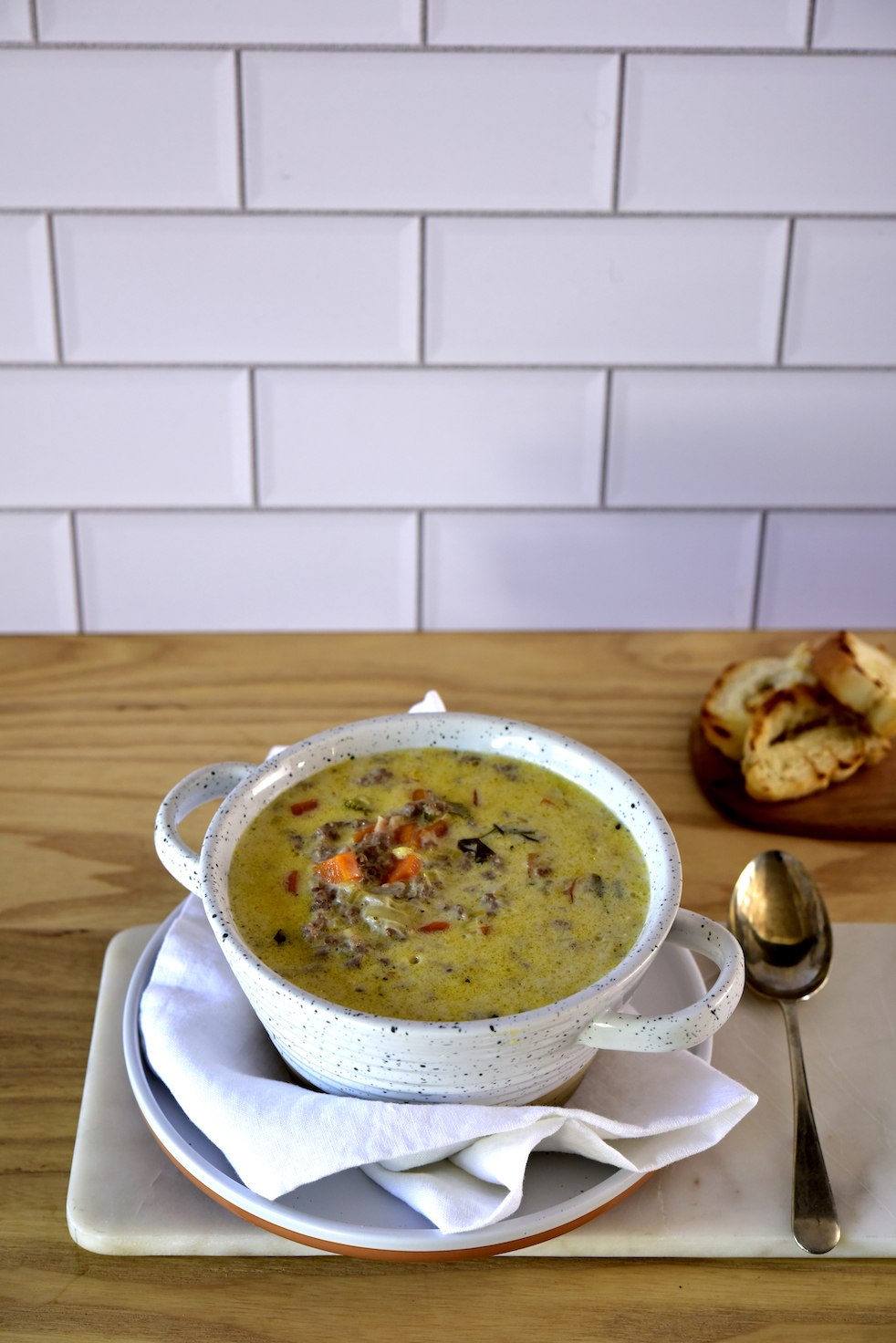 This recipe is a version of a dish I first ate in Germany at the age of 16. Käsesuppe mit Hackfleisch. It is most often called a Käse-Lauch-Suppe, or Cheese-Leek Soup which is a popular, hearty dish in Germany.