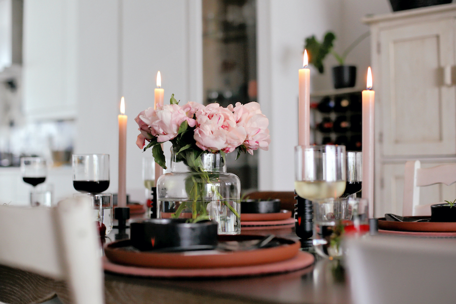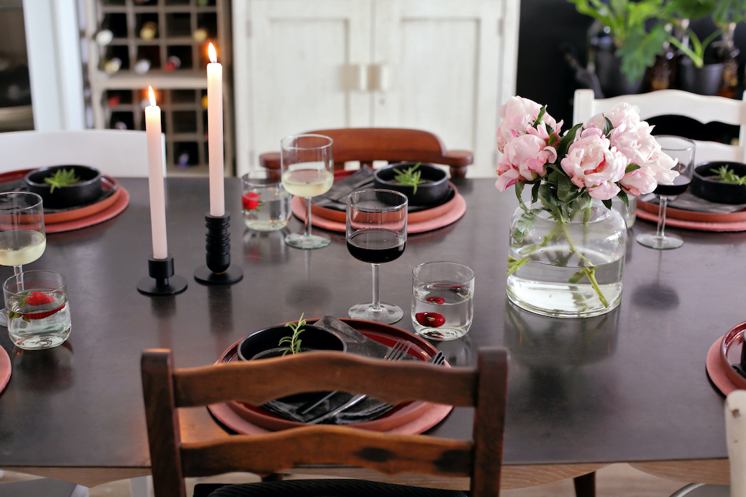 Keep it minimal. Less is more if you want to create a stylish table. I love my steel table top, so in summer I don’t cover it (the steel is very cold in winter). Also – less laundry.